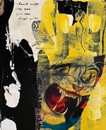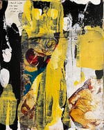 acrylic, crayon, pencil, marker, acetate, wax transer, found paper, ink, gel and varnish