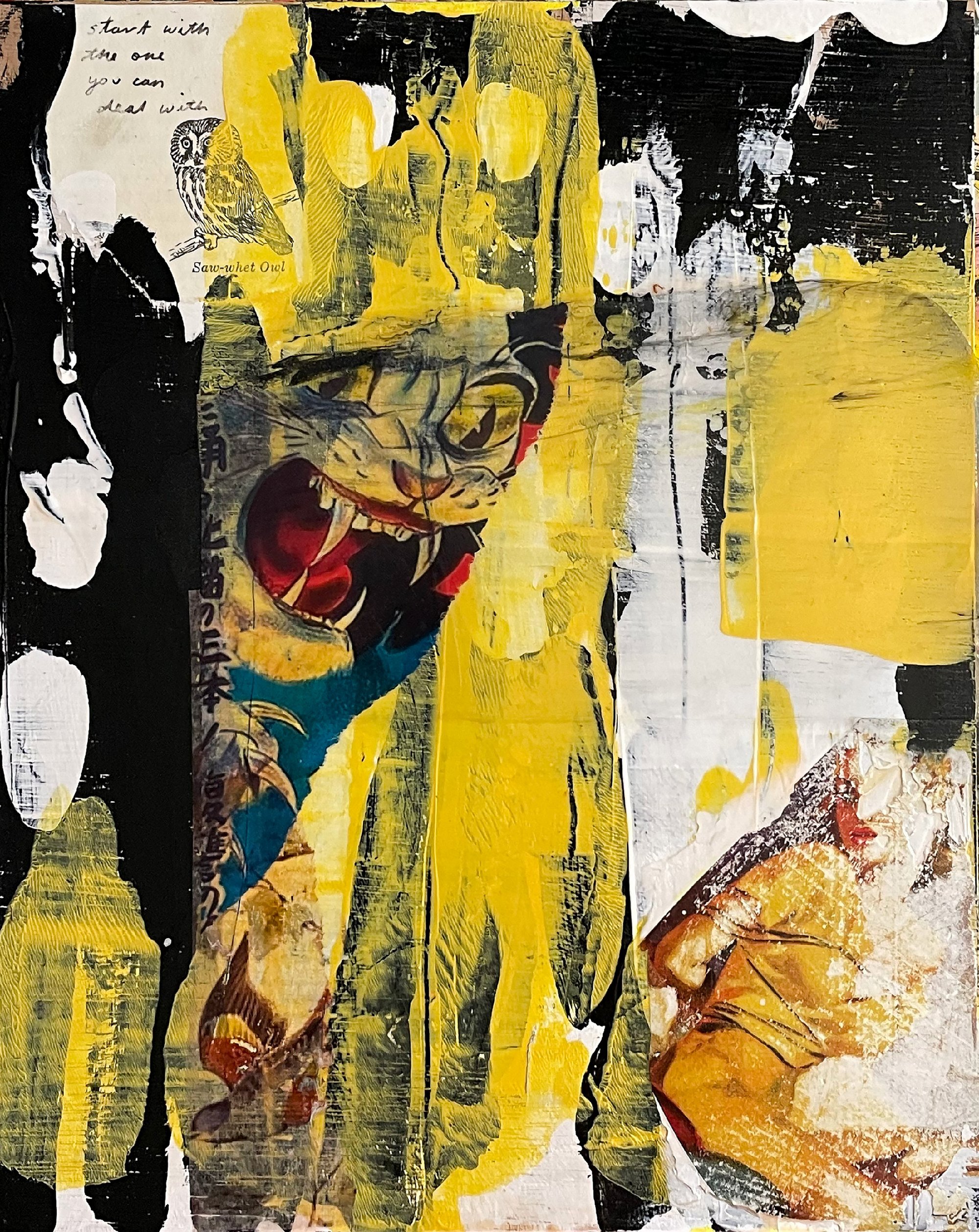 original mixed media collage on wood panel